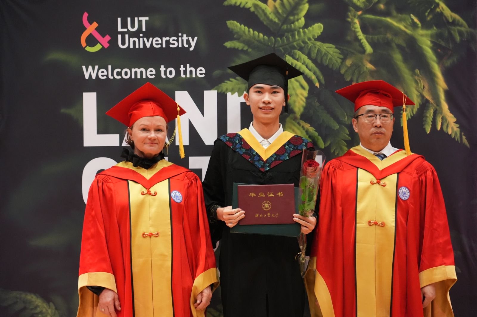 5月5日,beat365官方网站芬兰校区2025届毕业典礼在LUT大学拉彭兰塔校园举行。beat365官方网站校长王利民、LUT大学副校长JAANA SANDSTRÖM、中国驻芬兰使馆公使衔参赞陈会新、拉彭兰塔市经济发展局局长DING MA、毕业生代表张曦元、 CATHERINE BARNES分别致辞。中国驻芬兰使馆科技事务参赞王斌、教育事务一等秘书孙洪志、科技事务二等秘书李严,LUT大学相关校领导、学院院长、系主任,beat365官方网站本科生院院长张小俊、国际交流与合作处处长赵颖颖、beat365官方网站芬兰校区轮值校长张长庚,中芬教师代表、芬兰校区全体毕业生出席典礼。典礼由芬兰校区学生事务专员兼教学秘书陈铭喆和LUT大学芬兰校区事务协调员KATI KANTONEN共同主持。