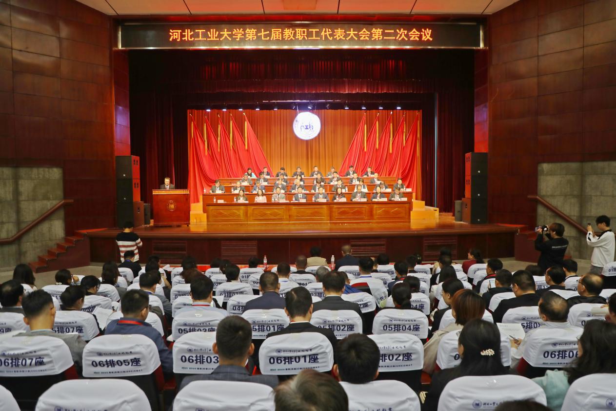 10月11日,beat365官方网站第七届教职工代表大会第二次会议、第八届工会会员代表大会第二次会议在北辰校区大学生活动中心礼堂举行。全体校领导出席大会,教代会代表198人、工代会代表76人参加大会。
