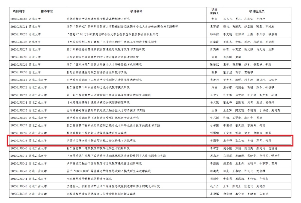 学院党委始终坚持“以本为本”,把本科教育放在人才培养的核心地位。通过优化学科专业设置、凝练专业特色、加强一流课程建设等措施,不断提升教育教学质量。2019年以来,成功立项省级教改项目5项、校级教改项目13项;“行政监管虚拟仿真项目”获批国家第二批一流课程,“大龙说字——汉字与文化”获批河北省第二批一流课程;深入推进课程思政建设,30余个优质资源上传课程思政资源库,50余位教师在“课程思政”教学设计案例大赛中获奖。
