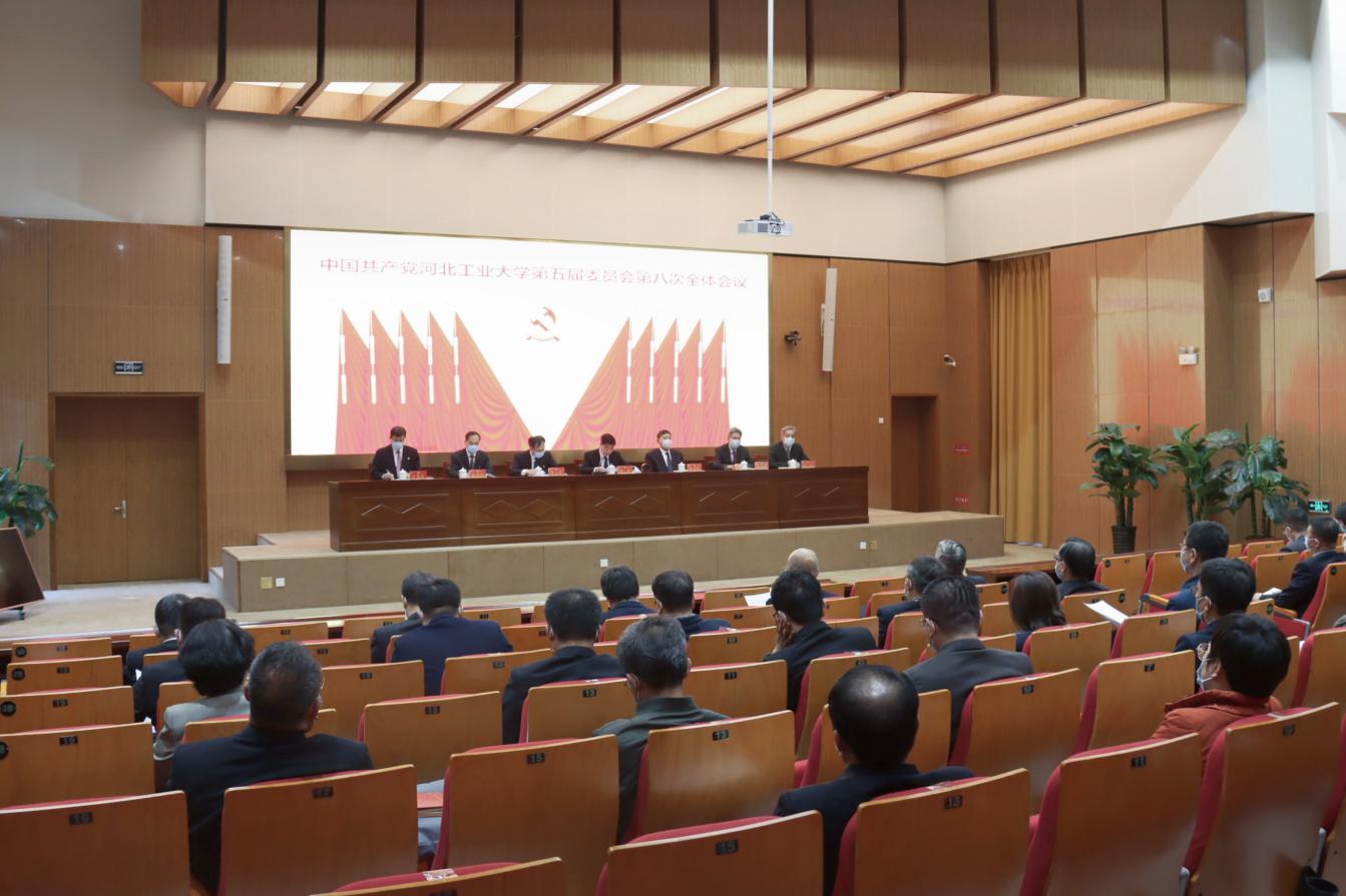 11月3日,中国共产党beat365官方网站第五届委员会第八次全体会议在机材楼报告厅召开。会议学习传达了党的二十大精神和河北省委十届三次全会精神,听取了校党委书记韩旭代表学校党委常委会所作的工作报告,审议通过了《中国共产党beat365官方网站第五届委员会第八次全体会议决议》。全会由韩旭主持。