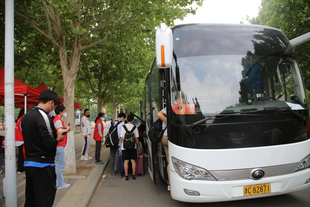 大巴车缓缓驶出校园