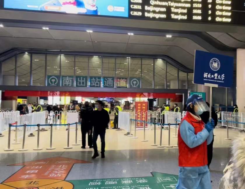 返津学生在天津西站下火车后,从地下南出站口出站。