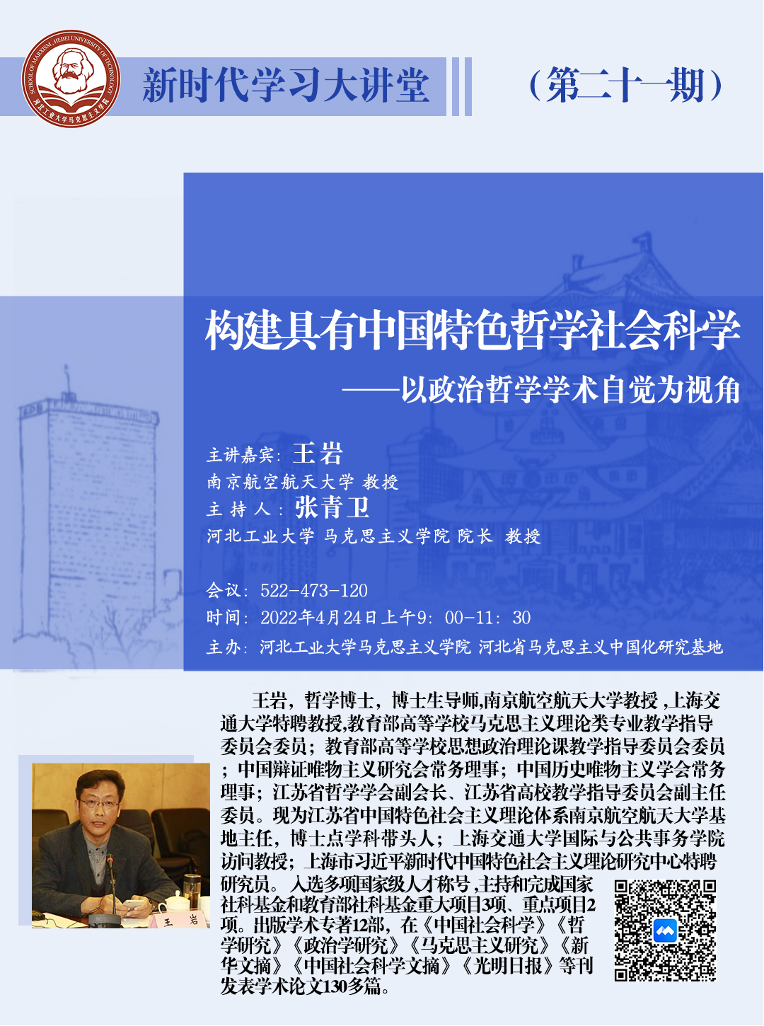 讲座题目:构建具有中国特色哲学社会科学--以政治哲学学术自觉为视角