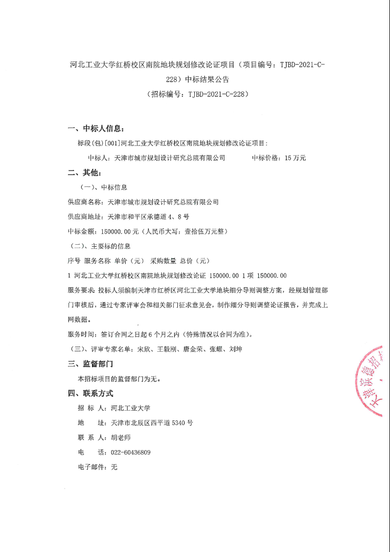 基建招标 当前位置:首页 \ 招标信息 \ 基建招标 beat365官方网站红桥校区南院地块规划修改论证项目(项目编号:TJBD-2021-C-228)中标结果公告 时间:2021-08-25 点击量:次 beat365官方网站红桥校区南院地块规划修改论证项目(项目编号:TJBD-2021-C-228)中标结果公告